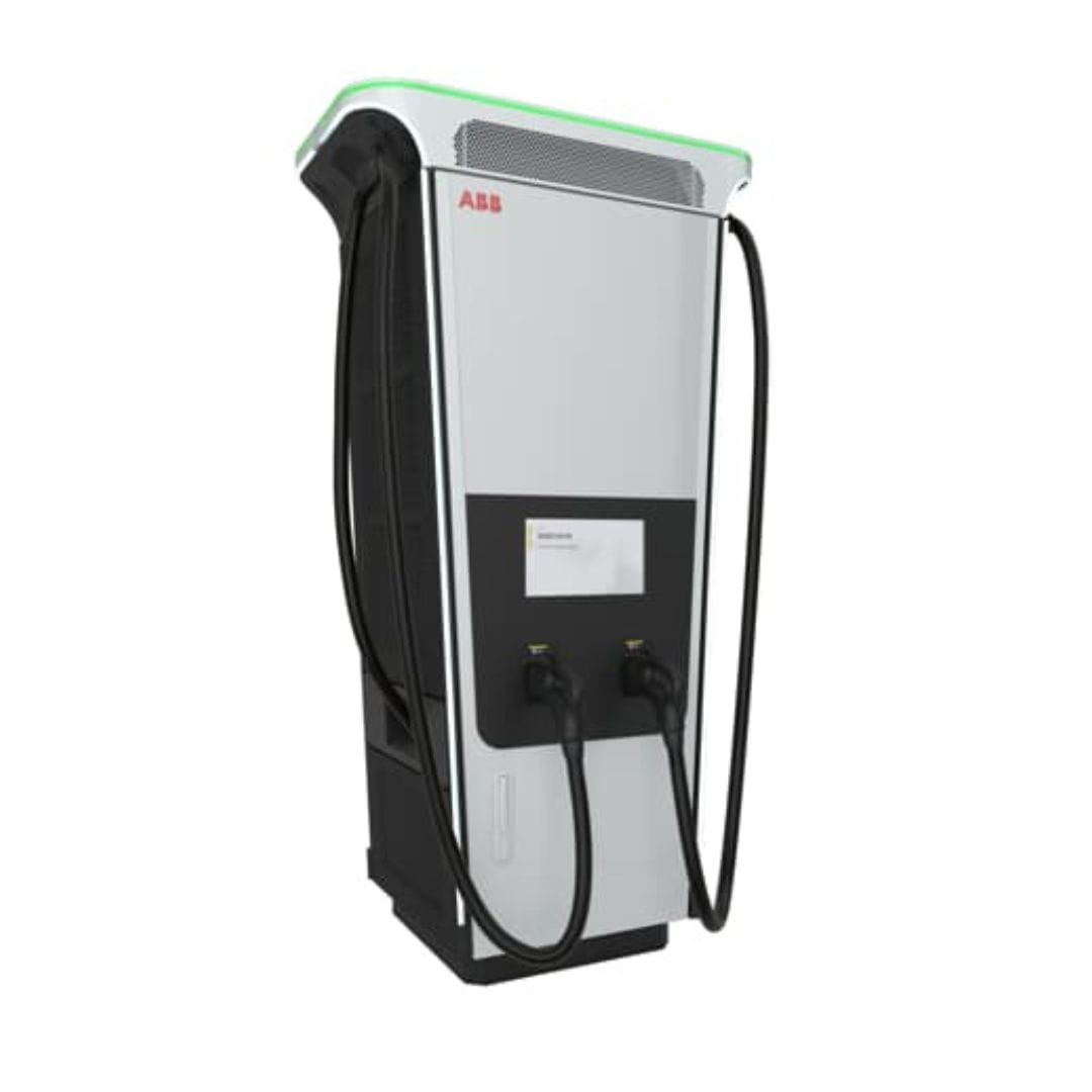Terra DC 360 charger, large cabinet, series 1, 360 kW, two 8 m air-cooled CCS connectors, 300 A rated, 500 A boost current, 15″ touch-display, RFID reader, MID metering, with 2 dynamic DC outputs, 180kW granularity, Amazon customized, CE.